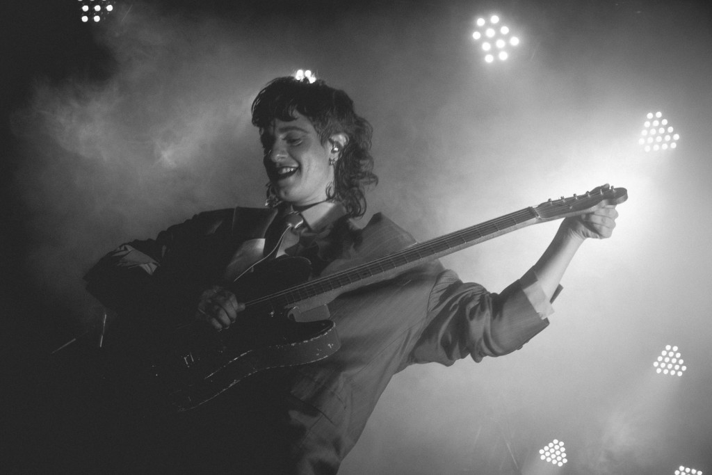 Las luces se apagan y se escucha una especie de radio vieja que va cambiando de sintonía repasando fragmentos, estribillos y acordes de sus discos “Sexo con Modelos” (2016) “Prender un fuego” (2018) y “Mojigata” (2022).