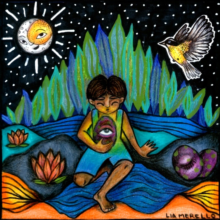 La tapa del disco quedó a cargo de otra artista, tatuadora y muralista que tiene la ciudad del Río Paraná, Lia Merello, quien plasmó de forma increíble y hermosa el contenido de las letras y las melodías que “Aristas” despliega.