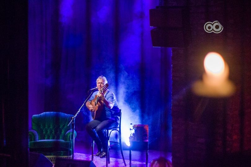 Guitarra en mano el show comenzó con “La comedia” (de su último disco “Basta de música”) seguida de un clásico que supo interpretar con Julieta Rada, “Visionarios”.